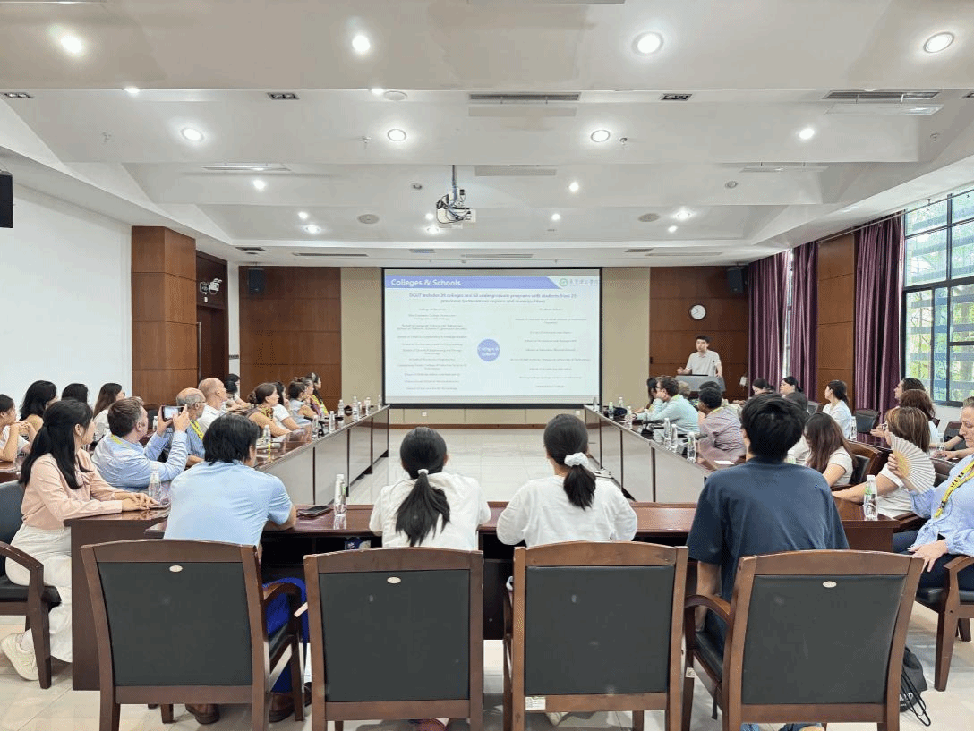 随后,代表团参与学校国际化总体情况介绍会。会上,校国交部朱子奇老师详细介绍学校国际化办学规划、重点合作项目及建设成效;紧接着,代表团与我院学生围绕专业学习、跨校合作等话题展开深入交流座谈,积极交换意见与看法,现场互动频繁、氛围热烈。