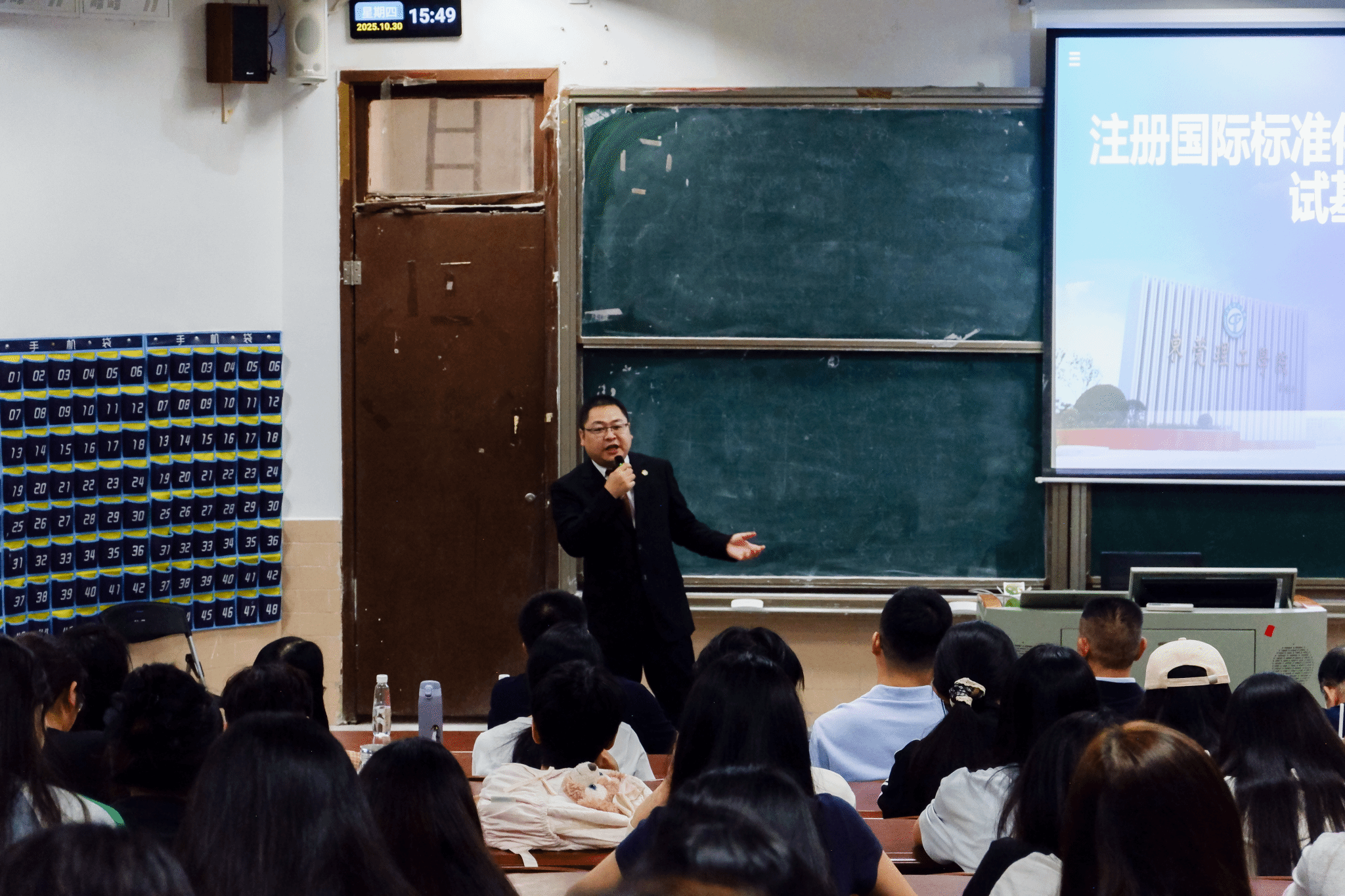 紧接着,徐汪伟秘书长对注册国际标准化师培训及考试基本情况作了系统介绍,点明其权威性、规范性、系统性、国际化与实用性五大特色。他指出,该证书不仅有助于提升个人就业竞争力、增强履历吸引力、获得优先录用机会,更能为质管学子的职业发开辟新路径。