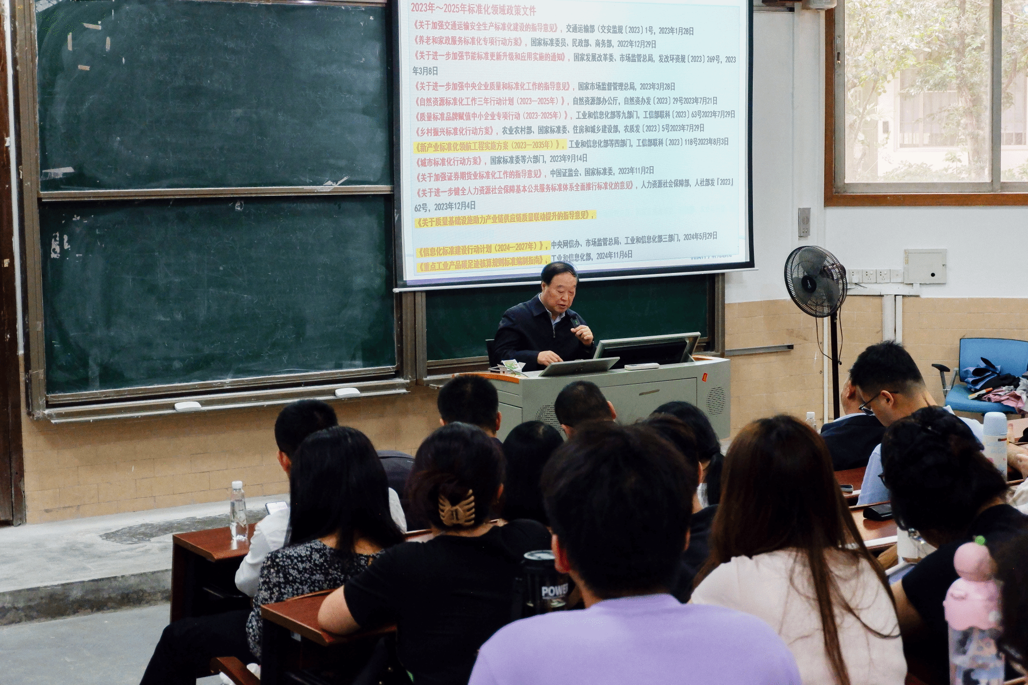 首先,强毅顾问深度解读我国标准化人才培养政策。他紧紧围绕《标准化人才培养专项行动计划》中“知识、技能、素质”等核心要求,从国家战略、企业发展、社会治理三个维度阐释标准化的深远意义,并提出“两新、两业、两化”理念,为标准化人才培养指明具体方向,深化了在场师生对标准化战略价值的理解。