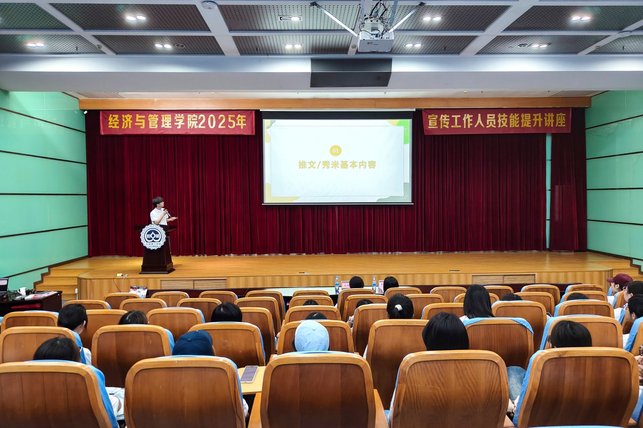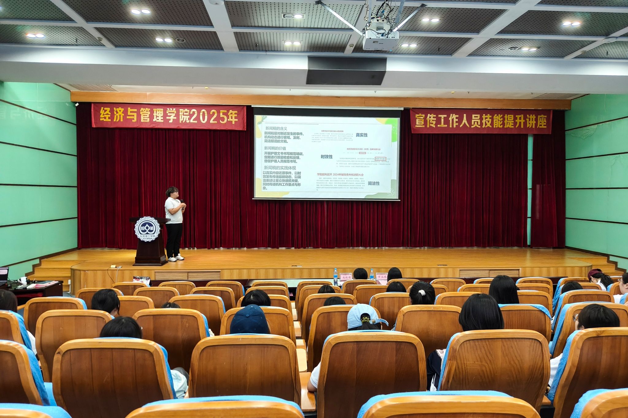 为提升学院学生干部与宣传骨干综合能力,11月16日,学院在莞城校区学术报告厅顺利开展以“党建引领聚共识,协同聚力提质效”为主题的学生干部素养能力提升与宣传人员技能提升培训讲座。马克思主义学院老师李宏,文学与传媒学院老师李缨,经济与管理学院新闻中心指导老师姜慧慧及经管学院各大学生组织干部与宣传人员出席本次讲座。本次讲座由新闻中心干事曾也航主持。