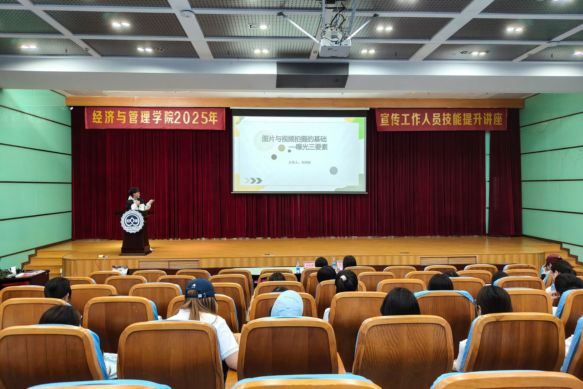摄制部副部长刘炜航则从前期曝光与后期调色两方面,系统传授摄影实操技巧,指导大家如何对图片与视频进行专业化处理,以提升视觉内容的质量与表现力。