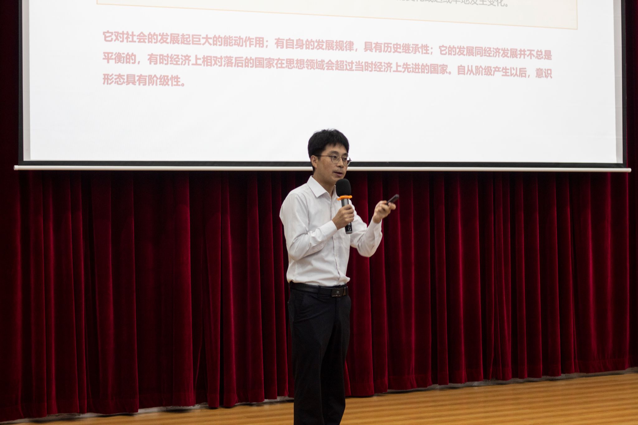 李宏老师紧紧围绕意识形态的定义、重要性及其面临的挑战深入阐释社会主义意识形态中服务人民的价值观念和知识体系的核心要义与时代价值。他强调,为加强建设具有强大凝聚力和引领力的社会主义意识形态,个人要强化理论学习、增强辨别能力、注重实践锻炼、树立正确观念和增强文化自信。