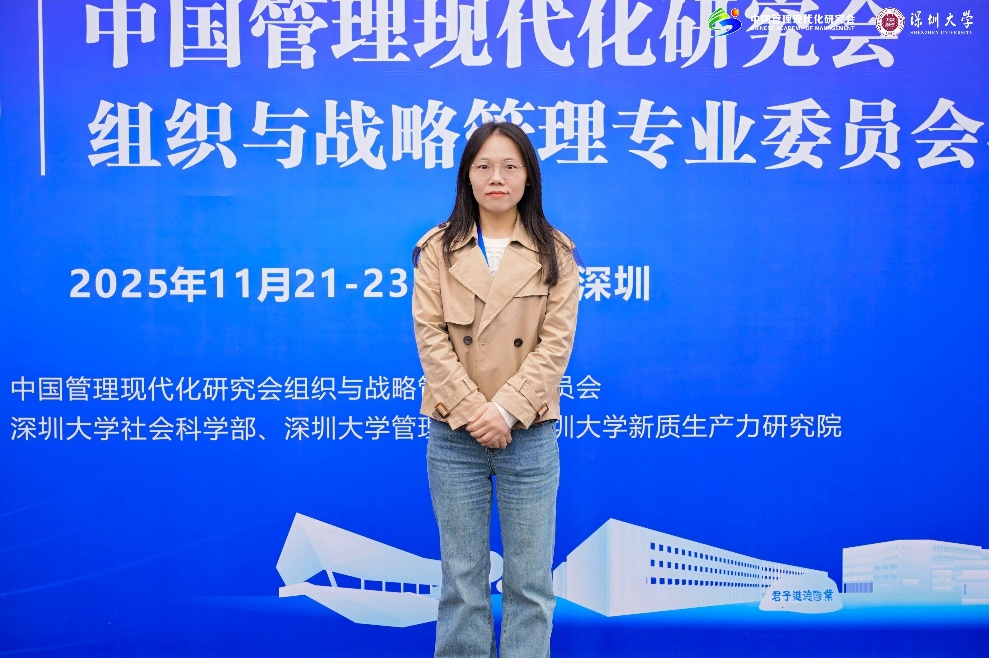 11月22日至23日,由中国管理现代化研究会组织与战略管理专业委员会主办,深圳大学社会科学部、深圳大学管理学院、深圳大学新质生产力研究院承办的“2025中国管理现代化研究会组织与战略管理专业委员会年会”在深圳大学成功召开。本次年会以“数智化范式下的组织与战略转型”为主题,吸引了来自全国高校、科研院所及企业界的众多专家学者齐聚深圳,共同探讨数智时代组织与战略管理的前沿议题。我院教师花龙雪参加本次会议,并应邀在平行论坛中宣讲研究成果。