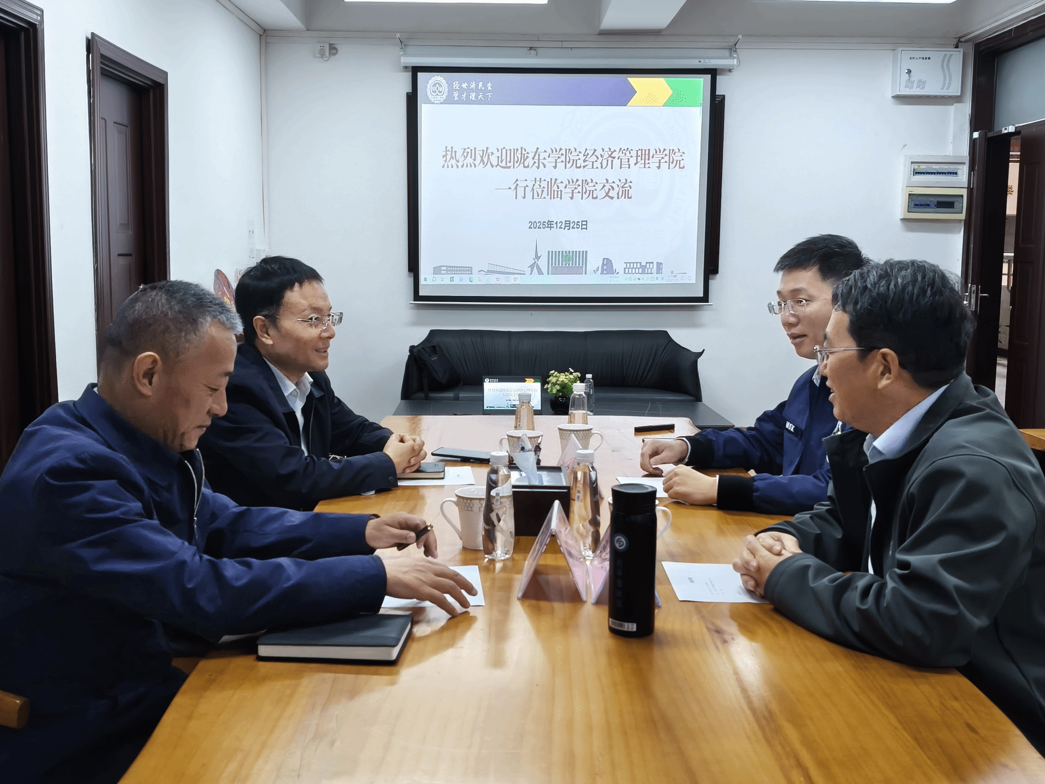 12月25日,陇东学院经济管理学院党委书记郭祎和院长赵铁军一行到访我院,我院党委书记路晓军、副院长金龙出席座谈。此次座谈旨在加强校际合作、分享办学经验、深化教育教学改革,共同探索高素质应用型人才培养的新路径。