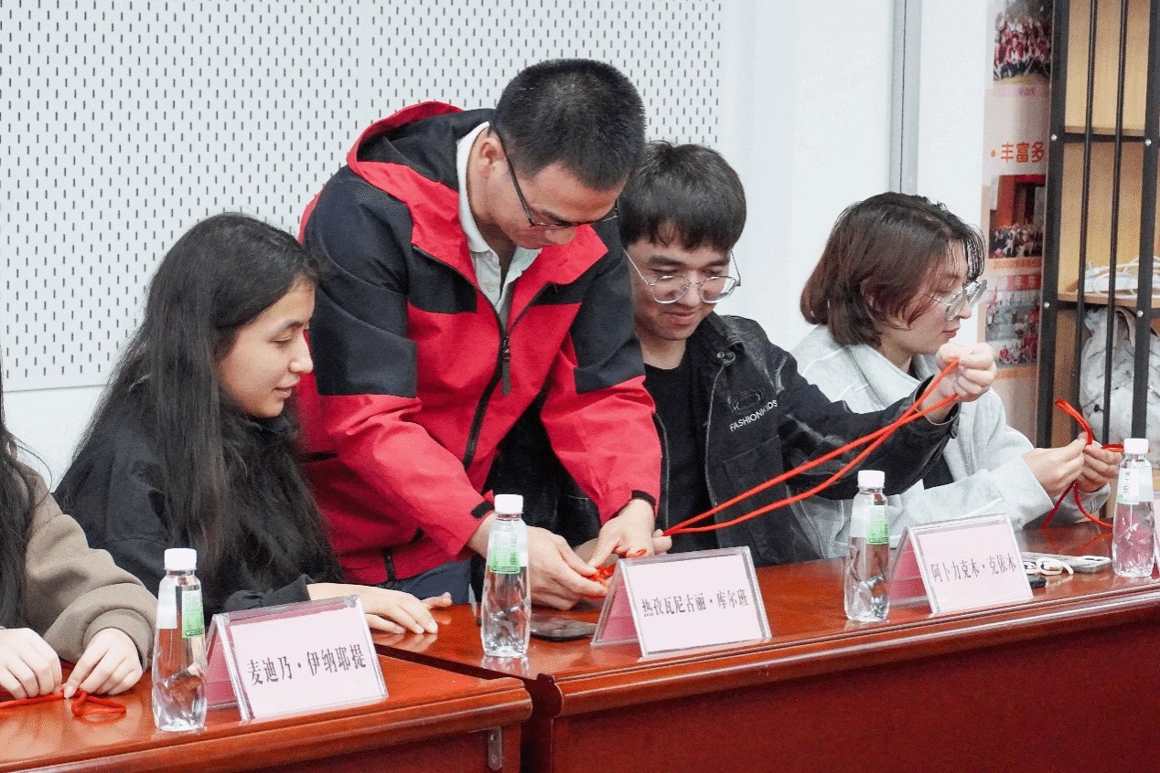 随后,师生共同学习编织同心结,现场氛围欢乐融洽,师生间的相互协助拉近了彼此距离。座谈会尾声,每位同学都收到一份学院精心准备的精美礼包,切实感受到学院对少数民族学生的诚挚关怀。