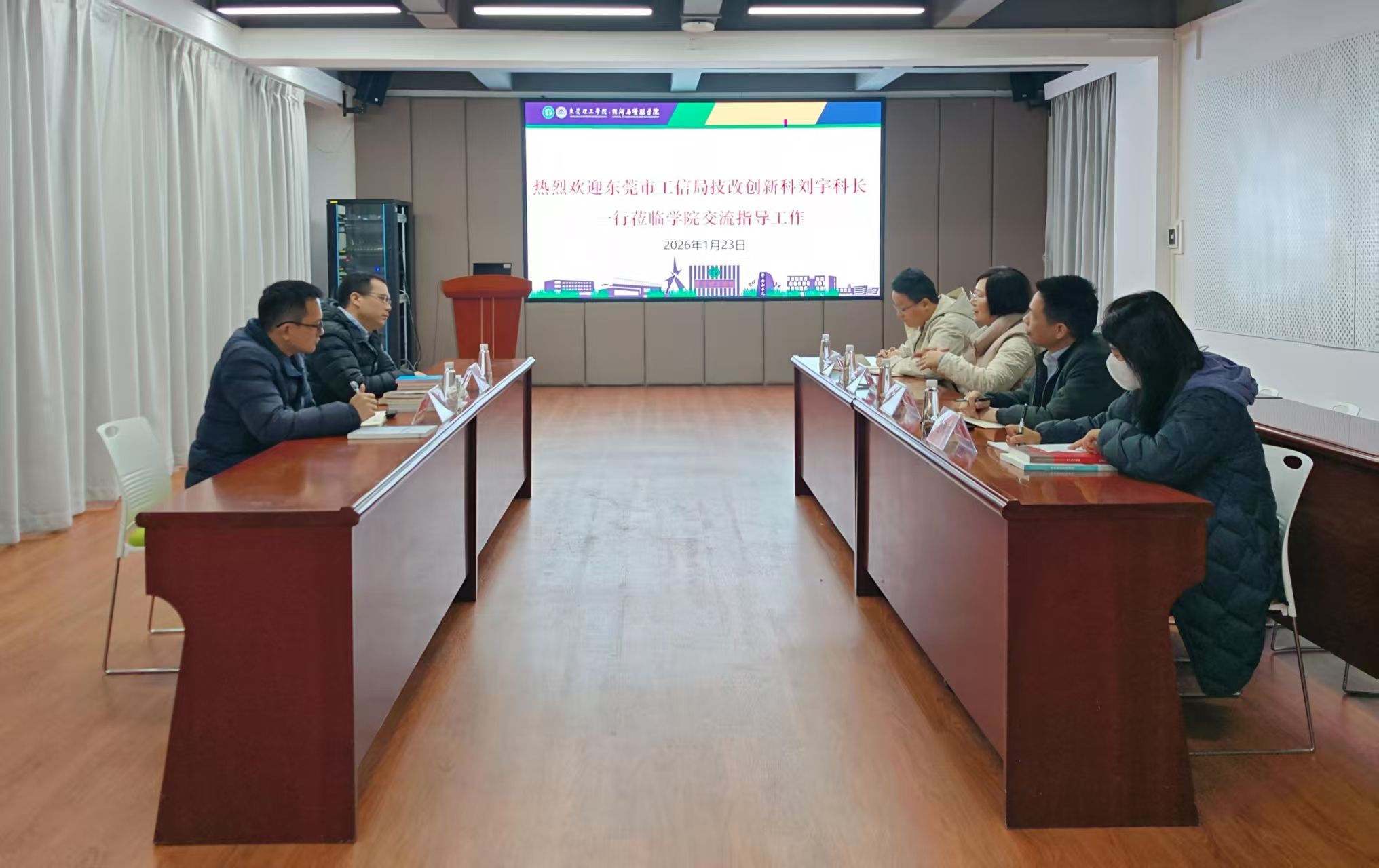 为深化政校合作,推动质量管理与企业新型技术改造深度融合,助力东莞制造业高质量发展,1月23日,东莞市工业和信息化局技改创新科科长刘宇一行到访学院开展调研交流。院长刘继云携学院相关骨干教师热情接待,双方围绕地方企业技改需求、质量管理人才培养、政校产学研协同等议题展开深入探讨,凝聚政校联动服务产业发展的共识。