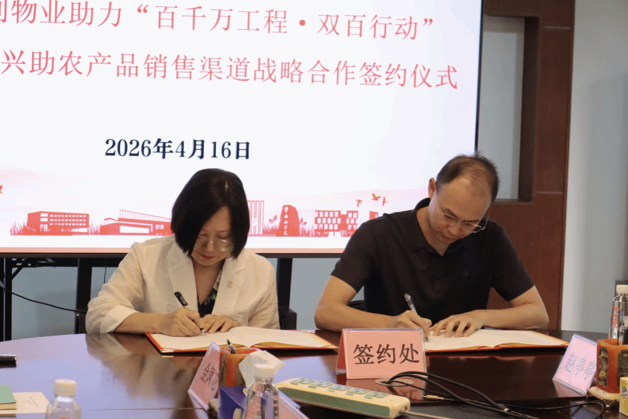 4月16日,我院与保利物业服务股份有限公司(东莞区域)战略合作签约仪式在莞城校区4415会议室举行。双方围绕广东省百校联百县助力“百县千镇万村高质量发展工程”行动部署,就助农产品销售渠道建设达成战略合作,共同探索“高校科研+央企渠道+乡村振兴”的湾区标杆模式。院长刘继云、副院长刘川、副院长金龙,保利物业集团东莞分公司代表,帮扶地区企业代表及相关师生代表出席签约仪式。