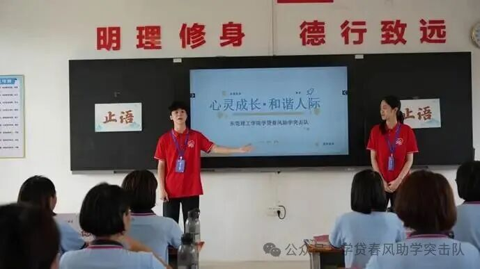 为强化与生源地中学的招生协作,扩大学校影响力,近日,东莞理工学院经济与管理学院学贷春风助学突击队在茂名市明德学校举办“心灵成长·和谐人际”主题招生送课活动,将心理教育与招生宣传深度融合,为学生提供心理成长指导与升学路径规划的一体化服务。