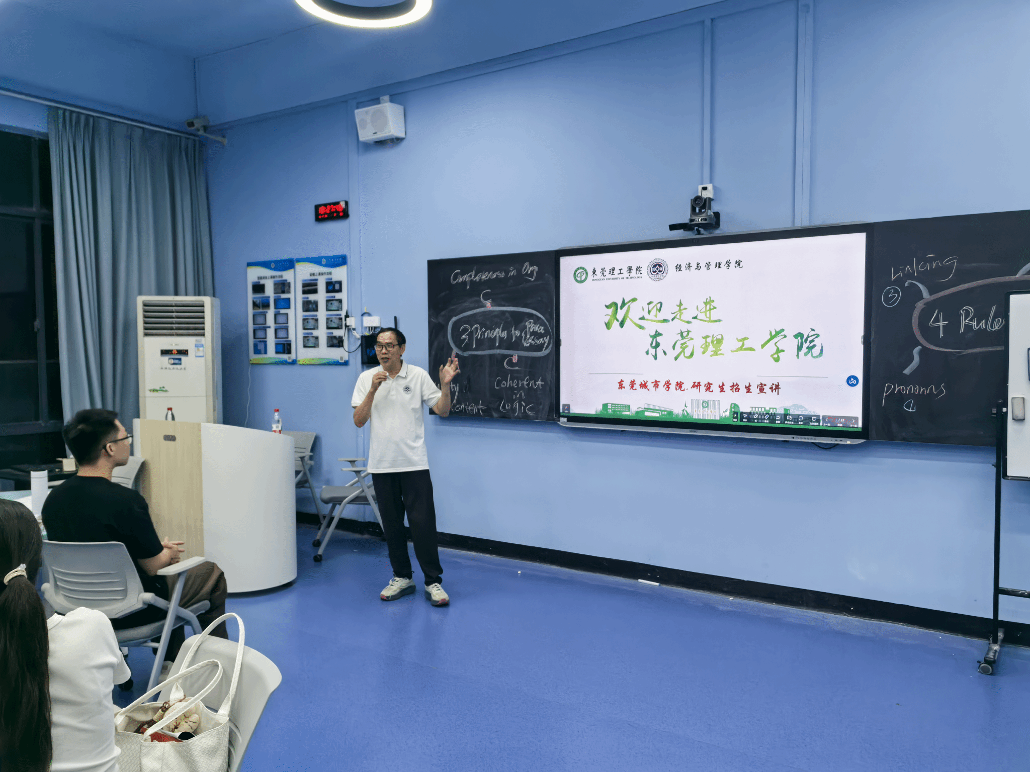 为吸引优质生源、提升研究生招生质量,同时加强校际学术交流与合作。10月13日,学院刘川副院长、崔彤老师赴东莞城市学院开展东莞理工学院研究生招生宣讲会。本次宣讲会由东莞理工学院经济与管理学院副院长刘川担任主讲嘉宾。东莞城市学院商学院贾瑶老师及众多有志于考研的学生共同参与了此次活动。