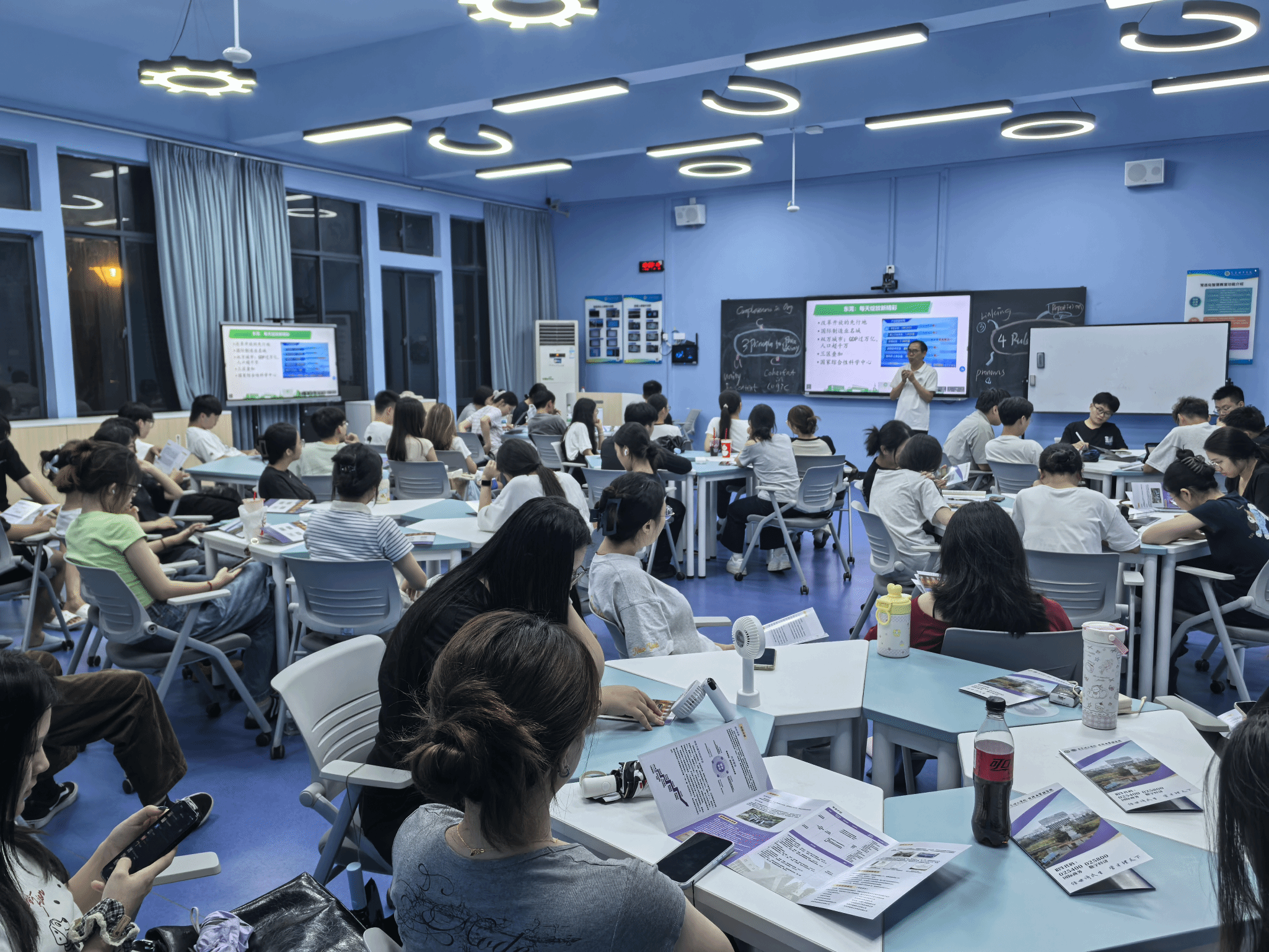 宣讲会上,刘川副院长首先代表学院对东莞城市学院的大力支持表示感谢,并向在场学生介绍了学校及学院的发展概况、学科建设成果和研究生培养特色。他强调,东莞理工学院立足粤港澳大湾区发展战略,在国际商务和数字经济领域形成了鲜明的办学优势,为研究生提供了高水平的科研平台和优质的育人资源。针对宣讲专业,刘川副院长进行了系统阐述。在国际商务专业方面,他详细解读了专业立足大湾区开放型经济体系的定位,介绍了“理论+跨境实践”双轮驱动的培养体系,以及与国内外知名企业、高校的合作交流项目,让学生们清晰了解该专业的人才培养方向和就业竞争力。在数字经济专业介绍中,他结合国家“数字中国”战略,聚焦智慧金融、数字贸易等前沿方向,重点展示了专业的师资力量、科研成果和实践教学基地,突出了专业在大湾区数字经济发展浪潮中的独特发展机遇。