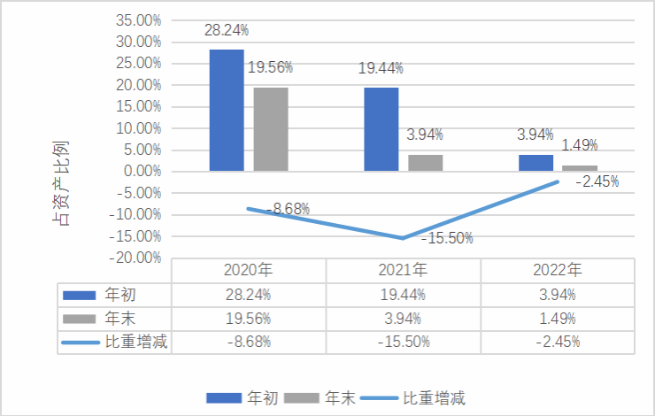 通过对库存形成原因分析,有效实施各项针对性措施,以2020-2022年为例公司存货中的原材料、服装、电子产品和医疗产品(口罩)等主要产品数量总体而言均有明显下降,同时存货占总资产比重有明显压缩效果,如图3所示。