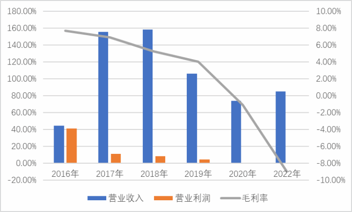 搜于特在2017年和2018年营业收入较2016年上涨了3倍左右,2019年开始出现下降,等到了2020年搜于特净利润首次出现了负值。公司在2019年半年报曾经表示,公司在2018年下半年开始就主动将供应链业务减速,因为当时受到国际上存在的中美贸易摩擦问题影响,消费市场并不活跃。同时,2019年上半年公司在供应链管理方面的业务盈利水平也不佳,这主要是由于各纺织原材料的价格发生了下滑。再来看到2021年和2022年营业收入持续下降,净利润也是持续呈负数,代表着这几年搜于特的经营状况是非常严峻的。