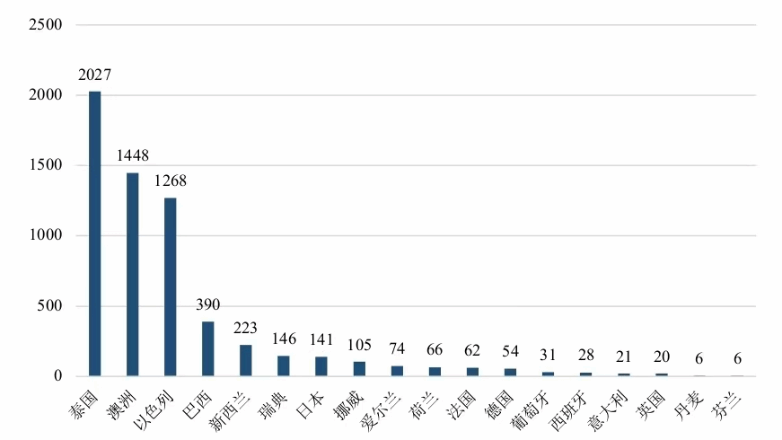 图 2 2023年5月比亚迪海外部分国家销售情况(万辆)